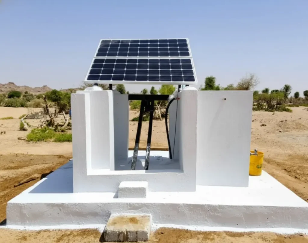 These community water wells are manually dug and built with a proper framework including brick layering internally, a raised RCC platform covered from each side to support the walls, and a proper drainage for wastewater.